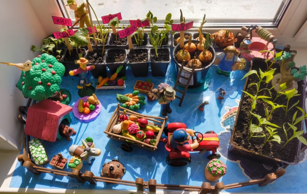 В ГУО «Детский сад № 142 г. Гомеля» воспитатели организовывают ежегодно «Огород на окне». Цель — вовлечь детей в уход за растениями, прививать любовь к природе и развивать экологические представления, бережное отношение к природе, трудолюбие. Дети вместе с воспитателями высаживали лук, зелень и овощные культуры, наблюдая за процессом роста. Каждый ребенок принимал участие в посадке и ежедневном поливе. Огород – это отличный способ показать детям, как из маленького семечка вырастает настоящий урожай!